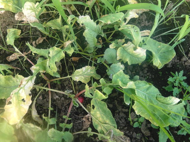 ニセダイコンアブラムシ 葉が黄ばみ始める