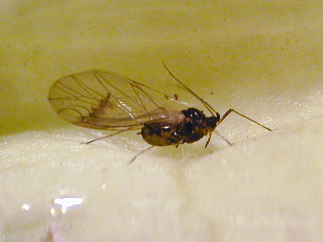 モモアカアブラムシ(有翅、体長2.5mm)