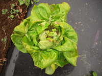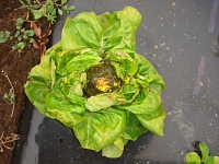 被害:主として結球期に、葉が淡褐色水浸状となり腐敗するが、悪臭は伴わない。