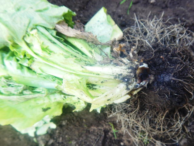 カブラヤガ 株元は食害により空洞