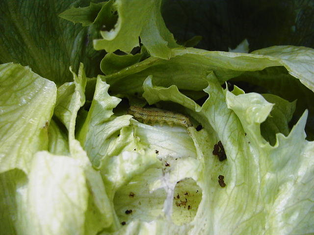 オオタバコガ幼虫は結球内部を食害する
