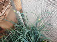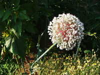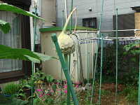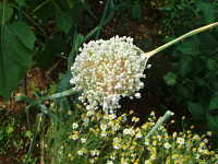 参考:抽台したリーキの蕾を残しておくと、りん茎の肥大を損ねるので摘み取る。