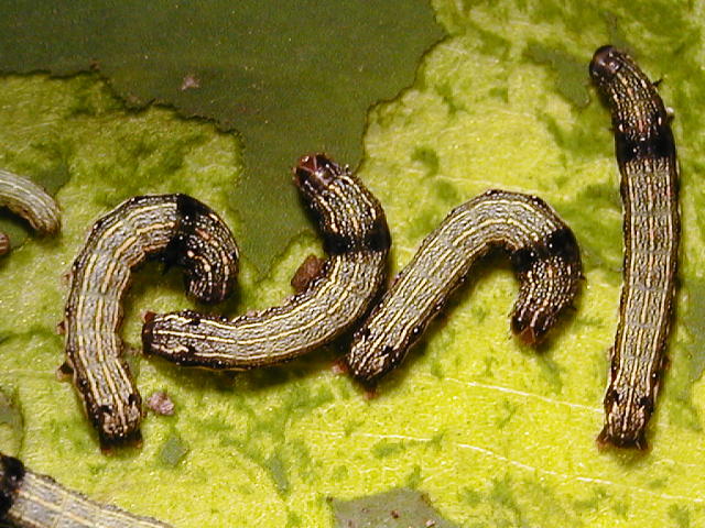 ハスモンヨトウ中齢幼虫(体長12mm)