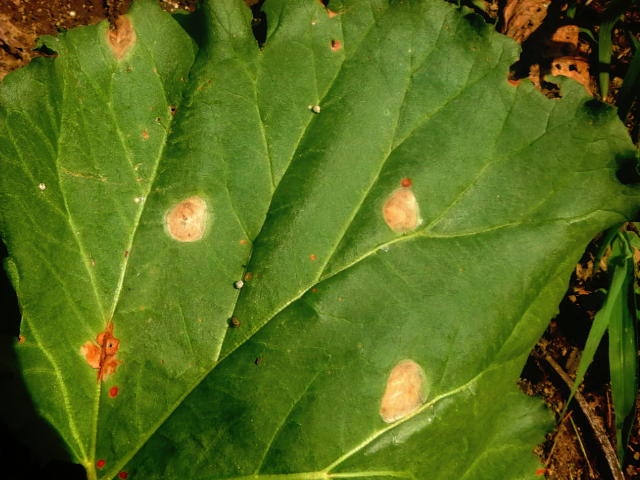 葉の肥料焼け 普通化成肥料8-8-8が乗った部位の葉が変色