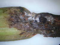 被害:地際部が細くくびれて、株が萎れる。