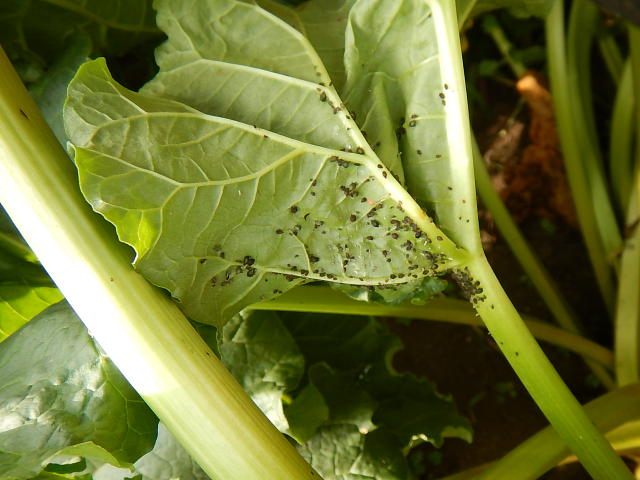 ワタアブラムシ 葉裏と葉柄に寄生