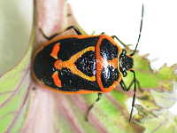 被害:成虫及び幼虫の吸汁により葉が白く変色する。