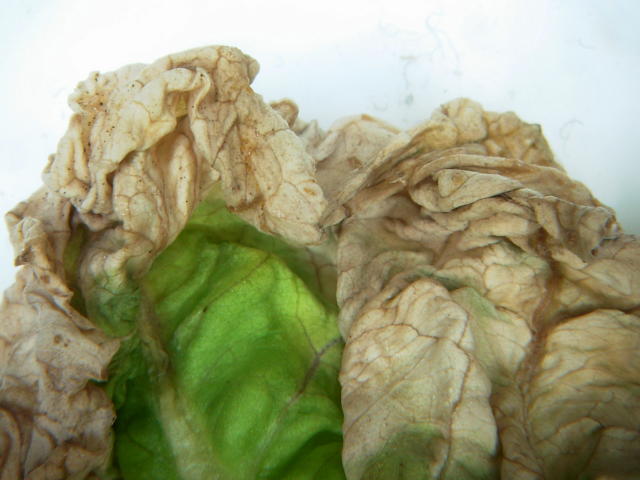 高温による葉枯れ 葉先枯れ部拡大
