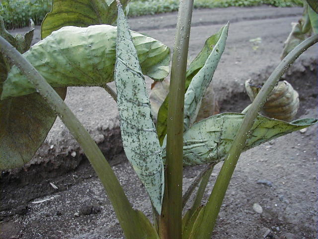 新葉に寄生したワタアブラムシ