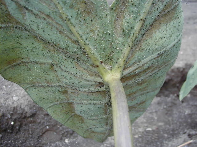 葉裏に寄生したワタアブラムシ