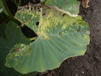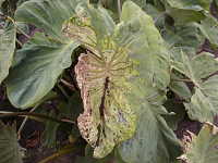 | 発生時期:8月〜11月 被害:幼虫による葉の食害 参考:ハスモンヨトウは、特にサトイモとダイズを好むため、発生予察の指標として重要である。 |