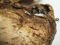 外皮をむくと菌糸が見える |