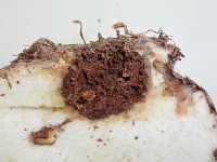 食害痕は褐変しスポンジ状になる