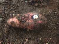 被害:幼虫によるイモの食害