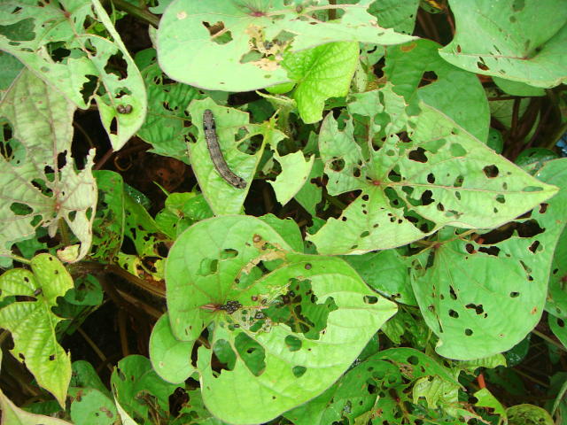 ハスモンヨトウ 葉の著しい食害