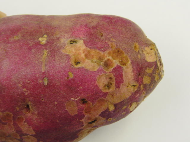 ヒメコガネ幼虫による被害いも