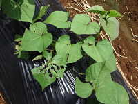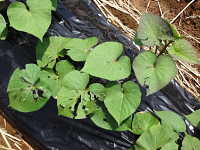 サツマイモは葉が柔らかいので、ひょう害を受けにくいが、大粒のひょうが降ると葉が裂ける。