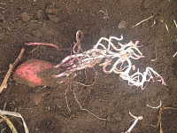 収穫時にイモから発芽