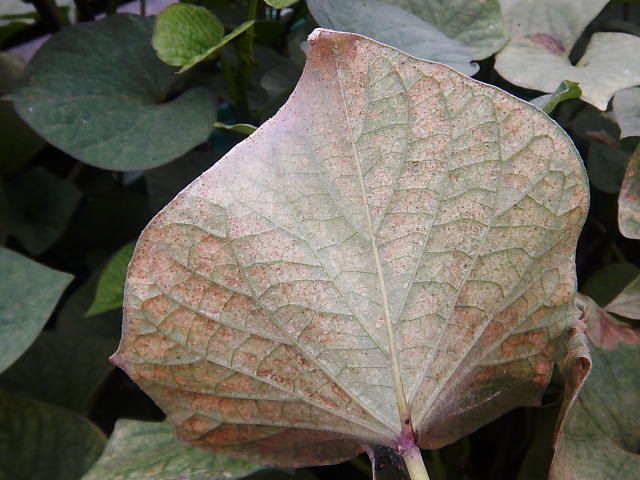 カンザワハダニによるクモの巣状の網(葉裏)