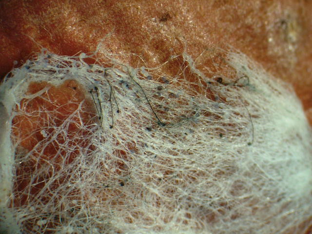 軟腐病 菌糸内に黒色胞子のうが見える