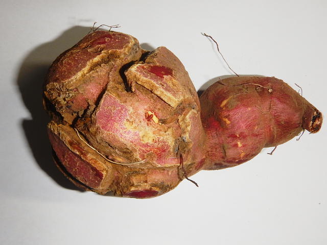 ネコブセンチュウ 大きな亀裂ができたイモ