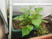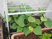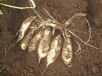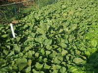 | サツマイモ「すいおう」は4月初旬に種イモを植え付け、5月に採苗して畑に植え付け、11月に葉と葉柄を収穫する。なお、8月〜11月まで数回に分けて収獲することも可能。天ぷらと葉柄のキンピラは比較的おいしい。 イモは「コガネセンガン」によく似て、粉質でさっぱりした甘さがあり、焼き芋にするとおいしい。 なお、窒素を3g/u以上を与えると、ツルボケしてイモがほとんど付かないケースがあったのでイモを収獲する場合は、無肥料〜少肥料栽培が望ましい。 |