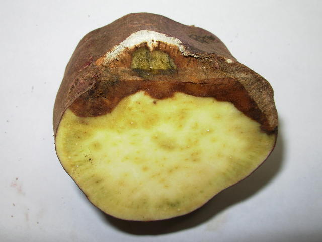 炭腐病 症状進行 イモの内部が黒褐色に変色