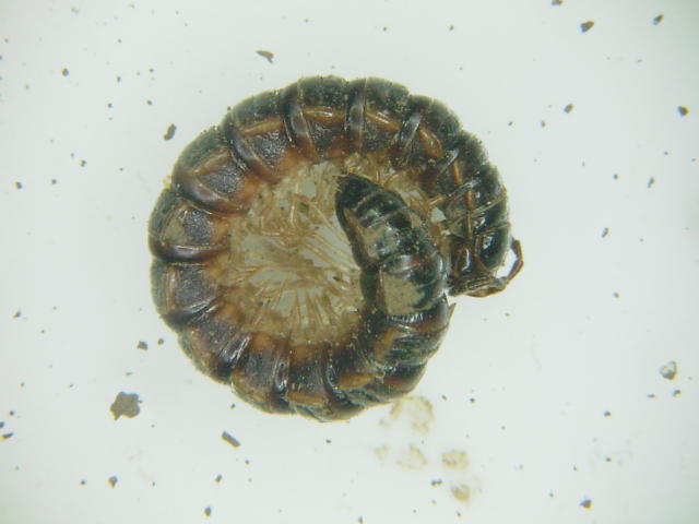 ヤケヤスデ成虫 刺激を与えると丸まって身を守る