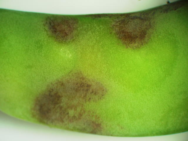 褐斑病 莢の黒褐色病斑