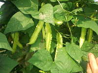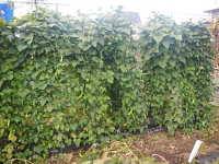 シカクマメは6月中旬に播種し、10〜15cmの莢を9月〜11月に収穫する。