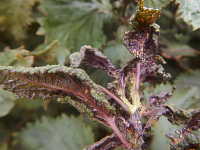 被害葉内のエゴマアブラムシ