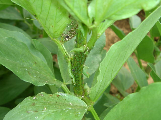 ソラマメヒゲナガアブラムシ 多数寄生葉