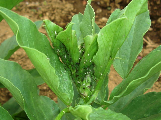 ソラマメヒゲナガアブラムシ 多数寄生葉
