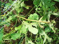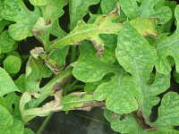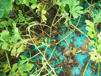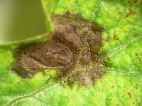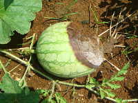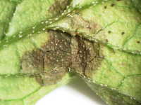 | 発生時期:6月〜8月 病原:糸状菌(かび) 伝染方法:病原菌は発病葉上で越冬し、伝染源となる。 被害:葉に褐色病斑を生じる。茎及び果実は水浸状に腐敗する。 |