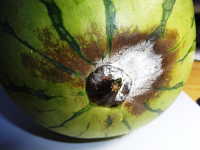 被害:土壌に接した部分から病原菌が侵入し、果実が腐敗する。