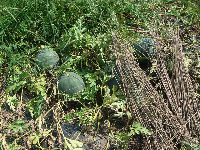 収穫期のスイカ(8月上旬)