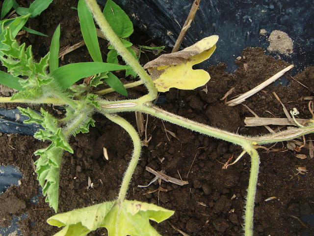 つる枯病 茎に褐色の裂け目ができる