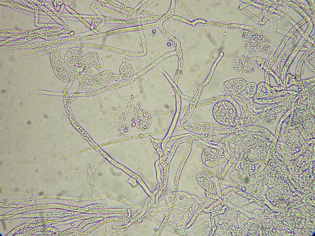 綿腐病 ピシウム属菌の菌糸と胞子のう