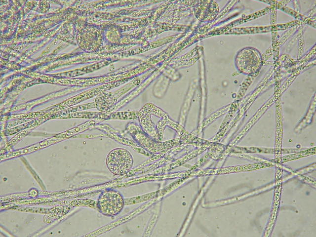 綿腐病 ピシウム属菌の菌糸と胞子のう