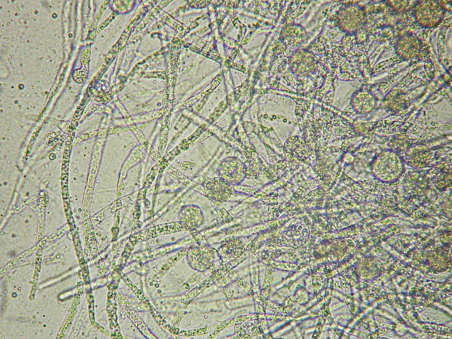 綿腐病 ピシウム属菌の菌糸と胞子のう