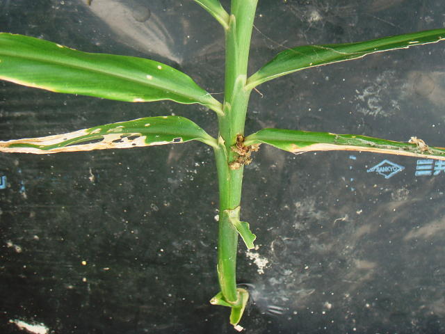 アワノメイガ 茎から虫糞が出る