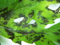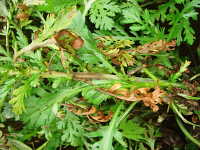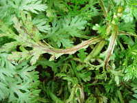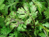 伝染方法:土壌中に残った発病茎葉が伝染源となる。土はね伝染する。