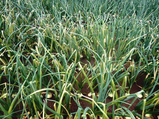 葉枯病 病株は葉の先端が折れる