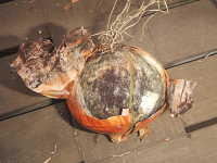 被害:外皮をはぐと黒いすすが付いている。(りん茎は腐敗しない。)