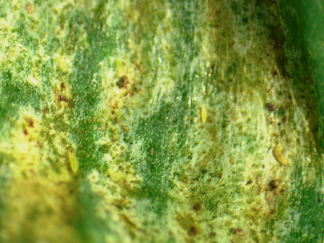 ネギアザミウマ幼虫のコロニー