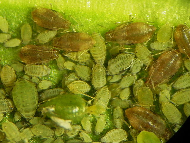 モモアカアブラムシ ニセダイコンアブラムシのコロニーに同居