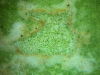 表皮の破れた葉裏病斑