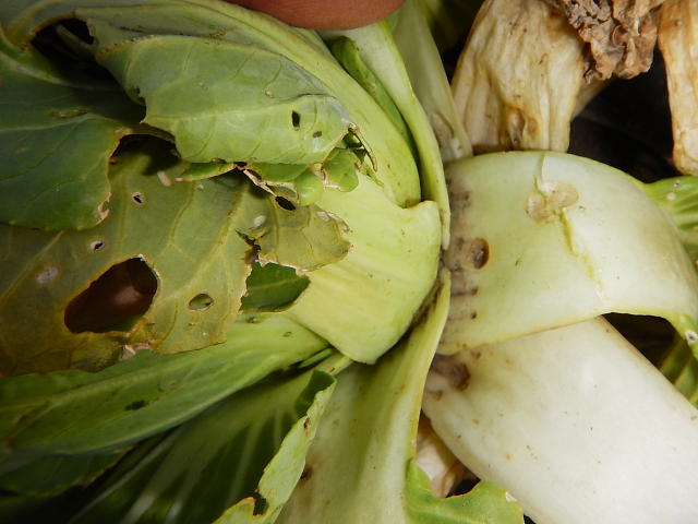 ヤサイゾウムシ 円形の食害痕