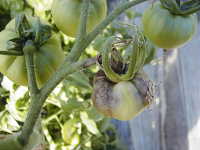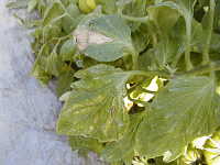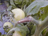 | 発生時期:9月〜6月 病原:糸状菌(かび) 伝染方法:病原菌は発病茎葉上で越冬し、伝染源となる。また、ジャガイモの発病茎葉から飛散した胞子によっても感染する。 被害:葉、果実、茎に褐色のやや窪んだ病斑を生ずる。 |