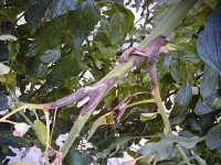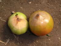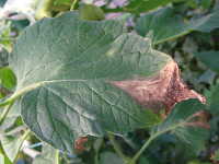 | 発生時期:12月〜6月 病原l糸状菌(かび) 伝染方法:ほ場に残った発病葉・発病果上の病原菌や、地表面に菌核として残った病原菌が、伝染源となる。次期作では、そこから胞子が飛散して伝染する。 被害:果実、茎、葉に灰色かびを密生した病斑を生ずる。 |